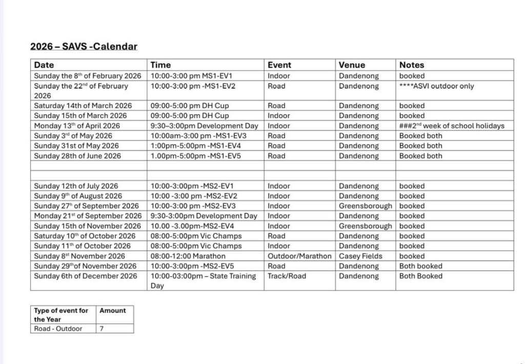 Register for upcoming races here. You’ll need your account login details from SAVS.